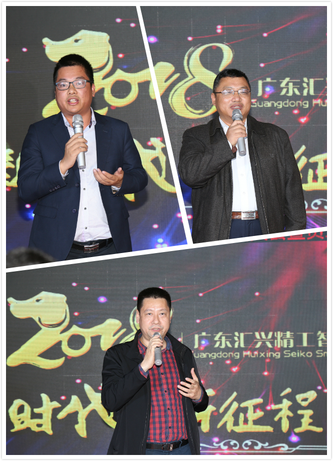 東莞證券何總、大信會(huì)計(jì)事務(wù)所黃總、華商律師事務(wù)所姜總等嘉賓致辭,均表示在2017年與匯興智造合作得相當(dāng)愉快,同賀匯興智造取得驕人成績(jī),并表達(dá)了在2018與匯興智造繼續(xù)合作的愿望,共祝匯興智造再創(chuàng)輝煌。