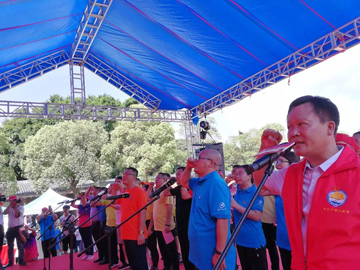 活動(dòng)開端, 在東莞市江西商會(huì)黨支部書記、匯興智造董事長(zhǎng)鐘輝等商協(xié)會(huì)黨支部負(fù)責(zé)人帶領(lǐng)下,近千名黨員共同重溫入黨誓詞。