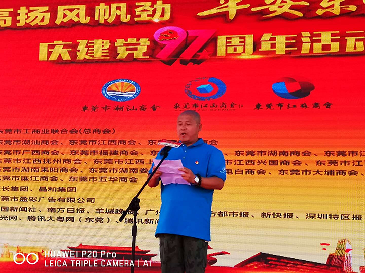 2018年6月30日上午,以“黨旗高揚(yáng)風(fēng)帆勁 平安東莞譜華章”為主題的慶祝建黨97周年活動(dòng)在黃旗公園舉行,本次活動(dòng)由市工商聯(lián)(總商會(huì))指導(dǎo),東莞市潮汕商會(huì)、東莞市江西商會(huì)、東莞市江蘇商會(huì)發(fā)起聯(lián)合在莞25家商協(xié)會(huì)共同主辦。東莞市工商聯(lián)(總商會(huì))副主席張軍民、副調(diào)研員宋志鋒等領(lǐng)導(dǎo)及近1000名商協(xié)會(huì)黨員出席活動(dòng)。