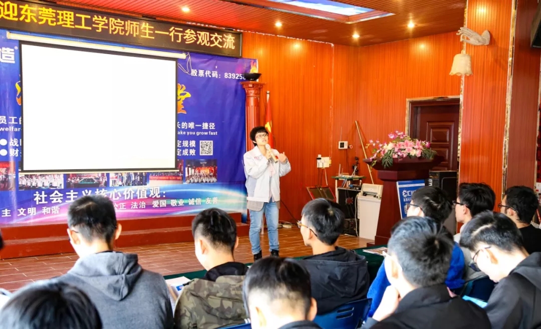 隨后,蔣明華在公司大會(huì)議室向師生們?cè)敿?xì)介紹了公司的發(fā)展歷程、產(chǎn)品特點(diǎn)、核心優(yōu)勢(shì)、企業(yè)文化、人力資源、員工晉升通道等方面的概況,并熱忱歡迎東莞理工學(xué)院學(xué)子來(lái)公司參觀,更歡迎畢業(yè)的大學(xué)生來(lái)公司就業(yè)。