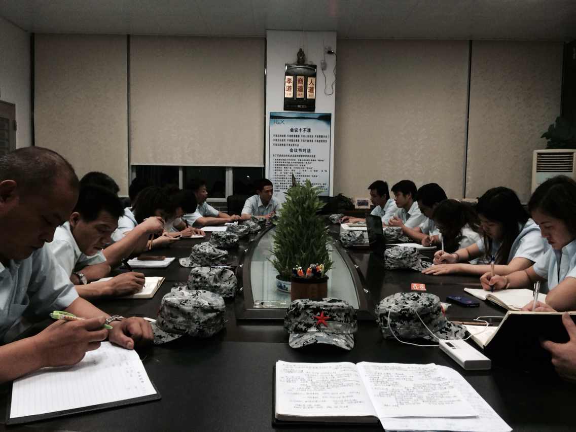 2014年6月14日下午,匯興智造董事長鐘輝帶領公司核心高管干部走訪了三個企業(yè)參觀學習,當晚回來后,7點半會議室里召開第二季度總結大會。會議上,各位總結分享了下午時走訪企業(yè)時的所感所想,也總結了這一季度的好與壞。