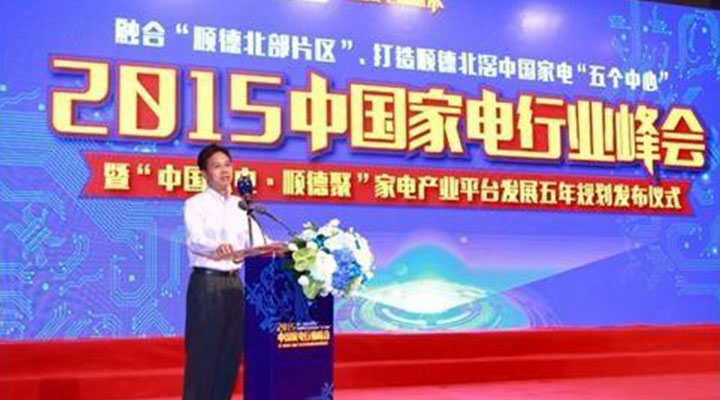 2015年7月29日,由中國國際貿(mào)易促進委員會廣東省順德區(qū)委員會、廣東省家電商會、慧聰網(wǎng)共同主辦的2015中國家電行業(yè)峰會暨“中國家電?順德聚”家電產(chǎn)業(yè)平臺發(fā)展五年規(guī)劃發(fā)布儀式在順德北滘隆重召開。