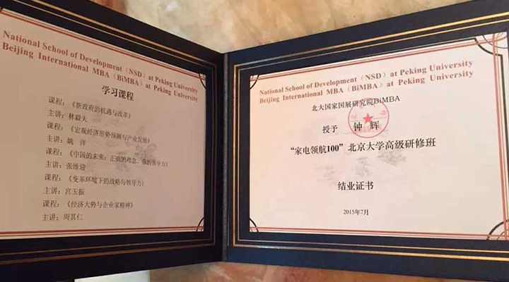 同時,經(jīng)過一年的學習和相處,“家電領航100”北大班的同學們迎來了結業(yè)的日子。匯利興集團董事長鐘輝為此次畢業(yè)學員,中國慧聰家電城董事總經(jīng)理宋冰晨先生為“家電領航100”北大班的同學們頒發(fā)結業(yè)證書。