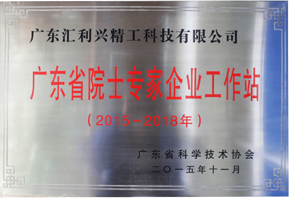 匯興智造廣東省示范院士專家企業(yè)工作站榮譽(yù)證書