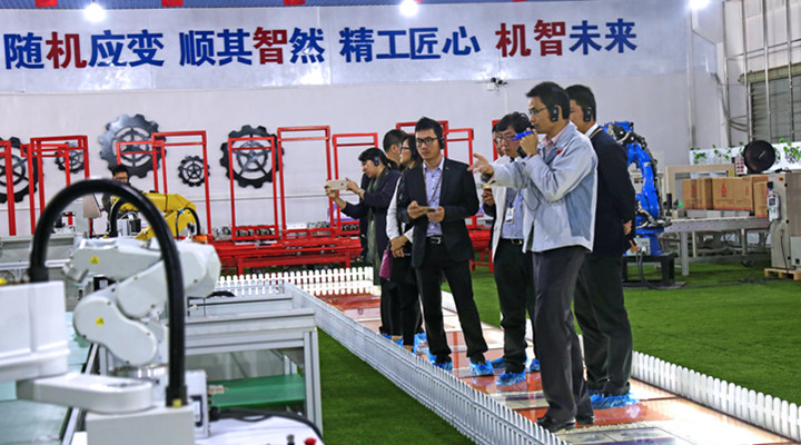 2017年1月3日,天安數(shù)碼城總建筑師李永凱一行到訪匯興智造交流學(xué)習(xí),董事長特助柯火炎對(duì)他們的到來表示熱烈的歡迎,并親自帶領(lǐng)參觀了開館不久的工業(yè)4.0體驗(yàn)館,介紹了匯興智造“順其‘智’然”、機(jī)‘智’未來”的設(shè)計(jì)理念,如何打造源于自然、貼近生活的智能工廠,聽了柯秘的介紹,李永凱建筑師表示深度的認(rèn)同:在這里,我看到的不是鋼筋、水泥、混凝土,而是藍(lán)天、白云、綠草、小橋、流水、木屋、石柱……這里就是工業(yè)文明源于自然的生動(dòng)寫照。