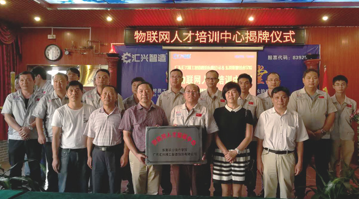 2017年9月27日下午, 東莞職業(yè)技術(shù)學(xué)院副院長(zhǎng)楊云奇,計(jì)算機(jī)工程系主任胡選子博士,藝術(shù)設(shè)計(jì)系主任何鳳梅博士,計(jì)算機(jī)系曹文梁教授等專家人員一行蒞臨廣東匯興精工智造股份有限公司(股票代碼:839258)考察調(diào)研并舉行“物聯(lián)網(wǎng)人才培訓(xùn)中心“基地揭牌儀式。匯興智造董事長(zhǎng)鐘輝,匯興中德智能制造研究院院長(zhǎng)李康順教授熱情接待了調(diào)研組一行。