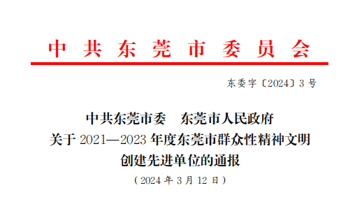 上榜啦!匯興智造獲授予“東莞市文明標(biāo)兵單位”!